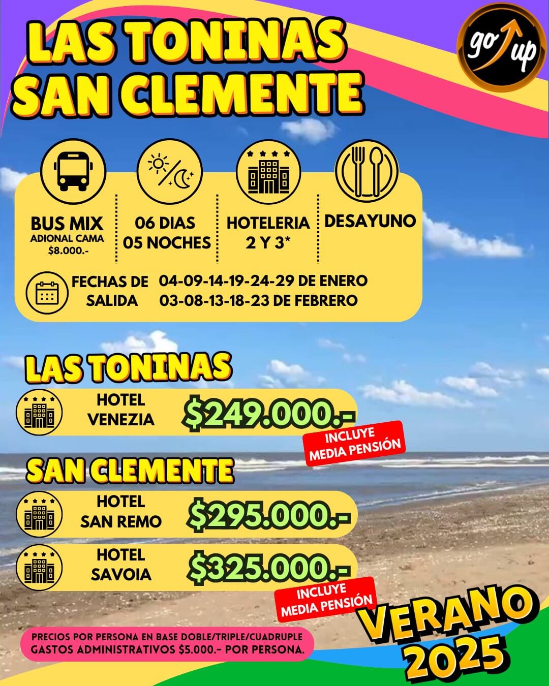 Reserve con Turismo GoUp y descubra destinos emocionantes de playas, ríos, sierras y montañas.